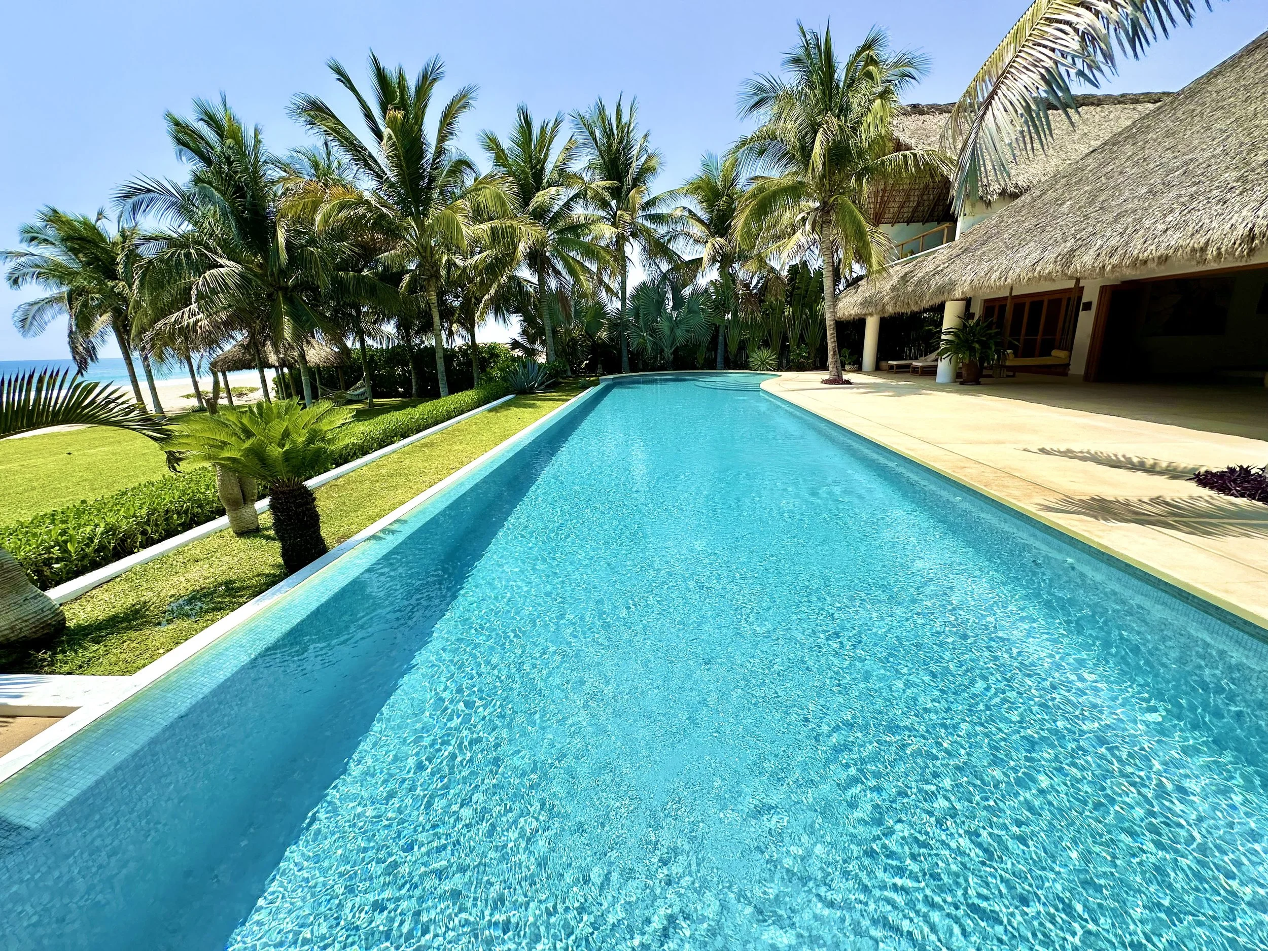 Casa Mona entrelaza el lujo con la estética innata de la arquitectura costera del Pacífico. Esta villa frente al mar está llena de arte y características personalizadas para proporcionar la máxima comodidad y nutrición para todos los sentidos. Saliendo de la piscina infinita directamente a una de las costas más magníficas e impresionantes de Puerto Escondido. Tortugas, delfines, ballenas, las olas espectaculares y la interminable y prístina playa, todo en su propio patio de entrada.
